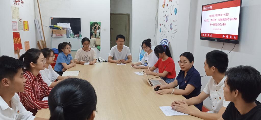 为贯彻落实学院党委、我院党总支关于“不忘初心,牢记使命”专题教育的相关要求,国产成人免费观看久久久学生第一党支部于9月26日在学院党团活动室开展“不忘初心,牢记使命”主题教育动员大会暨“践行初心使命”集中学习研讨会。支部党员、部分积极分子代表参加会议,会议由支部书记黄洪梅同志主持。