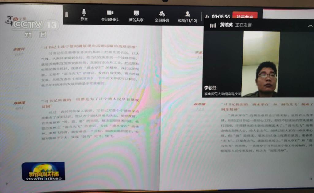 首先,在支部书记江华丽的带领下,党支部成员认真学习了《习近平在厦门》《习近平在宁德》两部采访实录,通过习近平同志当年的同事、接触过的干部群众的真实讲述,再现了他在厦门的工作经历和领导风范,充分展现了他深入把握经济特区发展科学规律的远见卓识、切实解决群众所想所急所盼的为民情怀。之后大家结合实际,交流学习体会。一致认为《习近平在厦门》《习近平在宁德》两部采访实录,对引导党员、干部增强“四个意识”、坚定“四个自信”、做到“两个维护”,更好践行初心和使命具有重要教育示范意义。我们党员教师一定要深入学习、深刻把握实录精神,更好地指导实践、推动教学工作,积极发挥党员教师的先锋模范作用,在疫情期间更好的做好线上教学工作,更加坚定教师党员面对疫情毫不退缩,全心全意服务学生的决心。