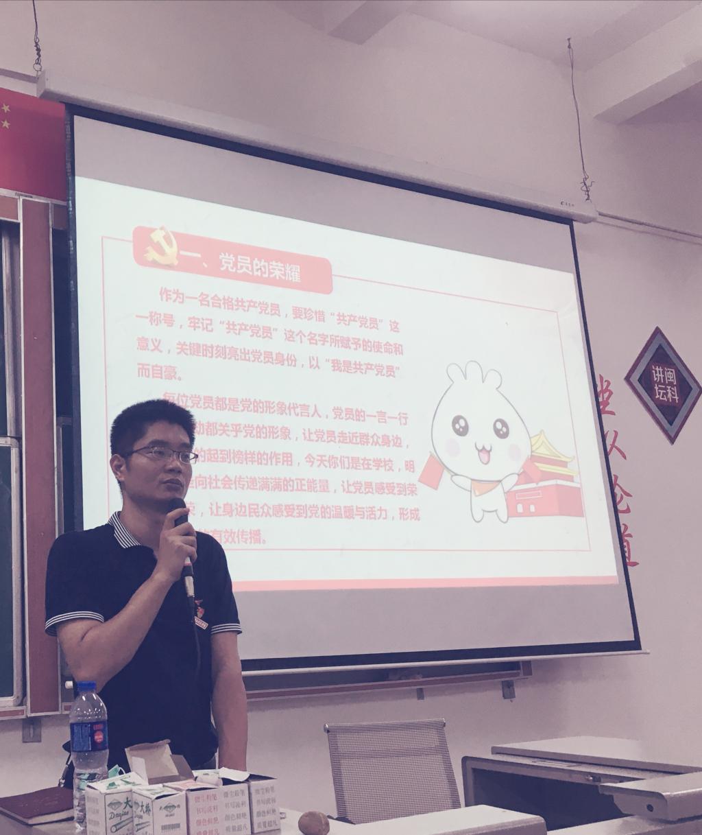 李毅任老师先从党员的荣耀,党员的信念,党员的责任三个方面,结合实际情况,引导毕业班党员同志如何更好地做好先锋模范,最后送以毕业班党员满满的祝福和殷切的期望。