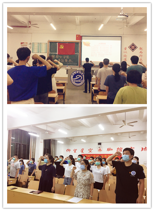 在党组织负责人李毅任老师的代领下,毕业党员们庄严的、一字一句的进行着在校的最后一次宣誓。这一次宣誓,他们的眼神坚定、声音嘹亮、信念坚定!